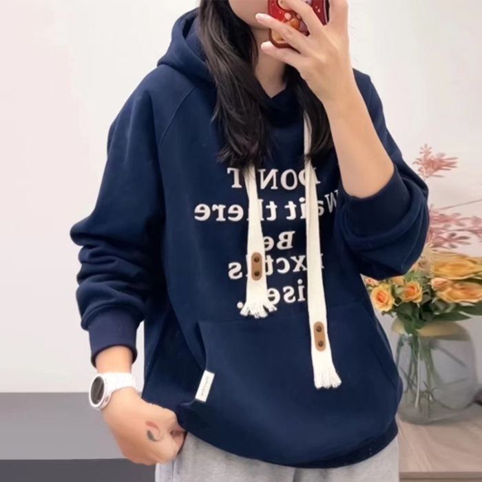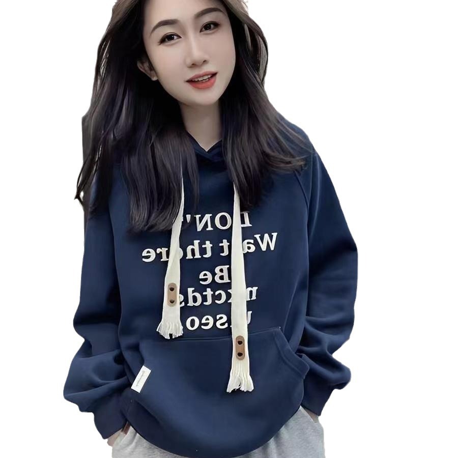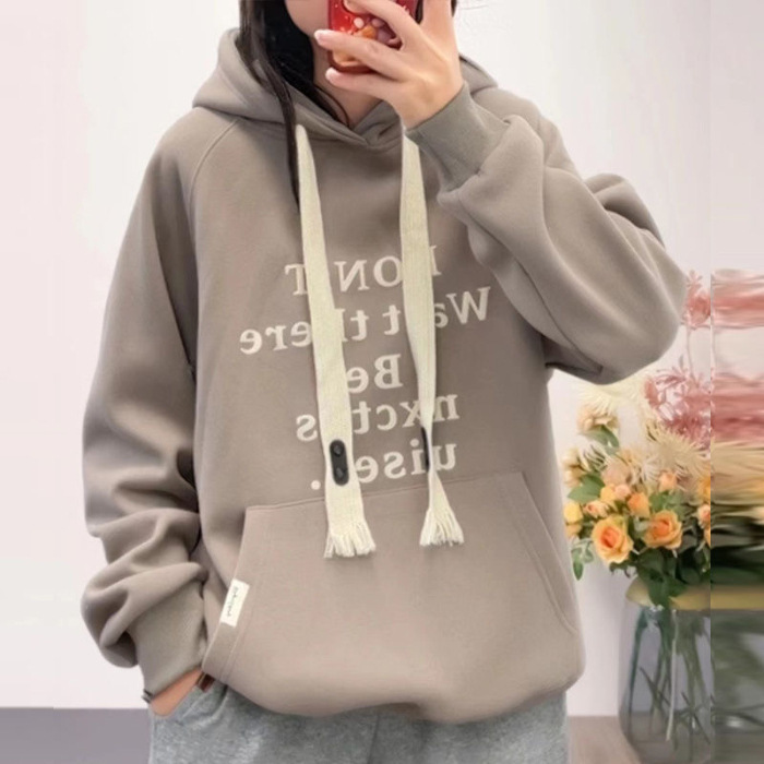 Главная страница > Толстовка больших размеров на флисовой подкладке утолщенная Женская толстовка с капюшоном 2023 зимняя свободная композитная куртка с буквенным принтом и шнурком