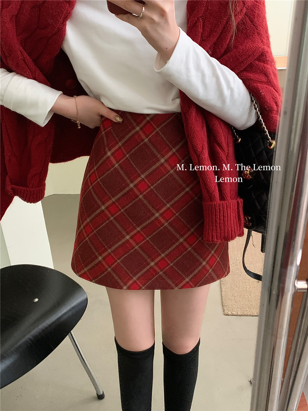 2024 новая осенне-зимняя шикарная шерстяная короткая юбка А-образного типа с высокой талией в корейском стиле, закрывающая тело и утягивающая клетчатую юбку для женщин