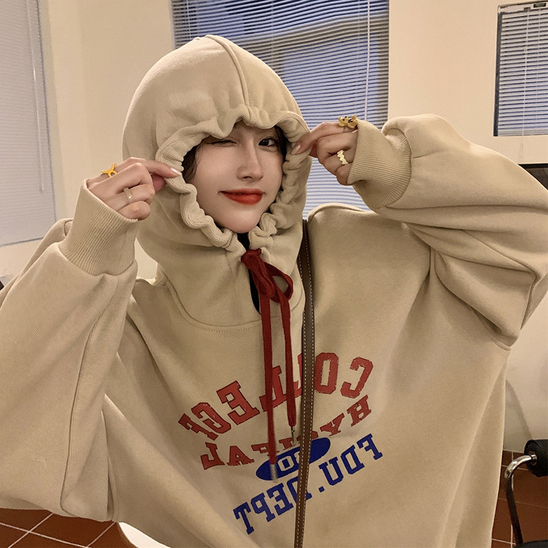 Главная страница > 2025 новая осенне-зимняя толстовка с капюшоном, женская куртка с капюшоном, свободный ленивый стиль, топ на флисовой подкладке, тренд 20935