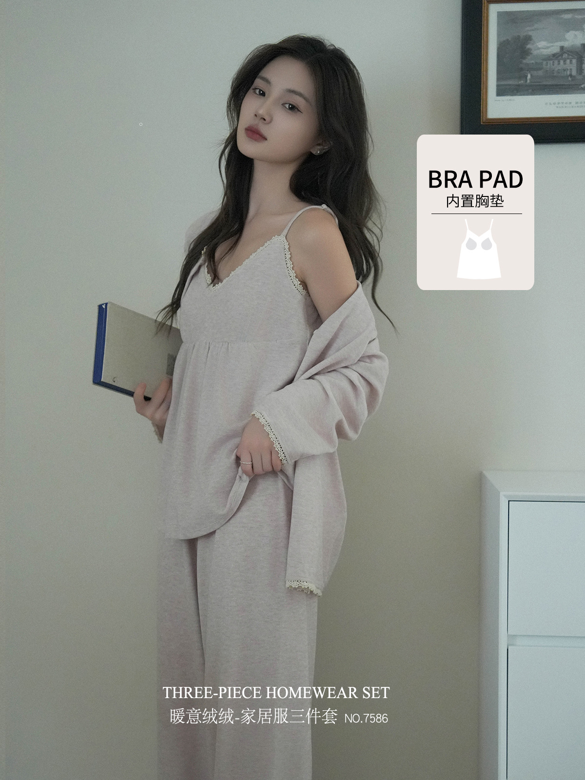 7586 домашний халат набор из трех частей кардиган с длинными рукавами повседневный подтяжка девушка чувствует дом осенью и зимой теплый горный кашемир