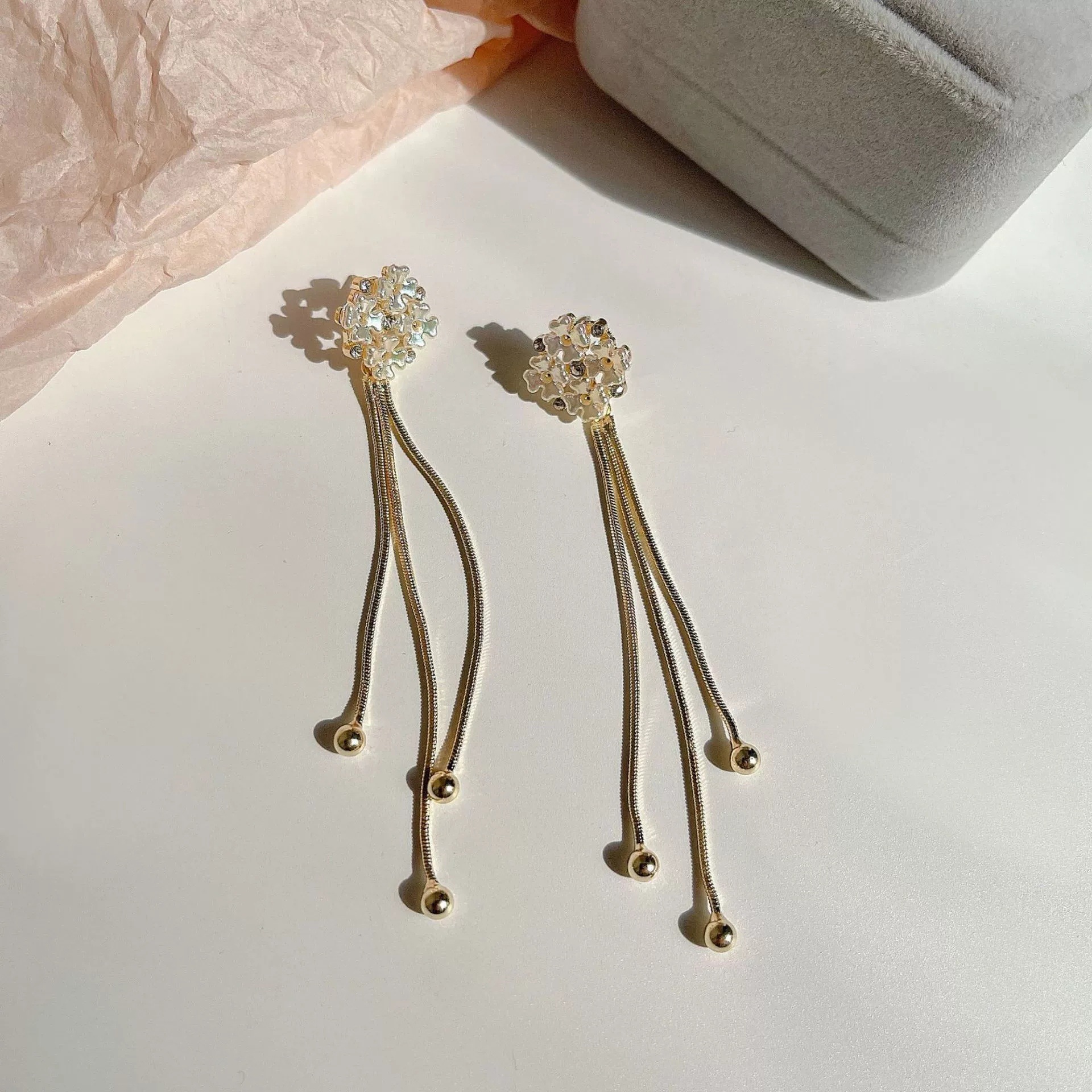 Amazon Цветочный темперамент длинные серьги высокого уровня с кисточками серьги модные легкие роскошные серебряные иглы легкие экстравагантные серьги с бриллиантами