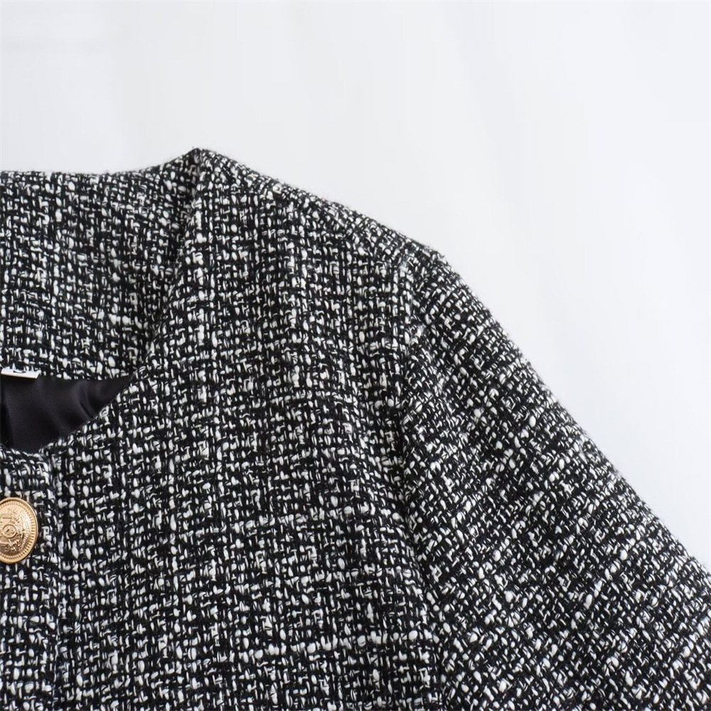 Европейский и американский стиль, осенняя новинка, твидовый жакет для женщин, однотонный, короткий, модный, в стиле светской львицы.