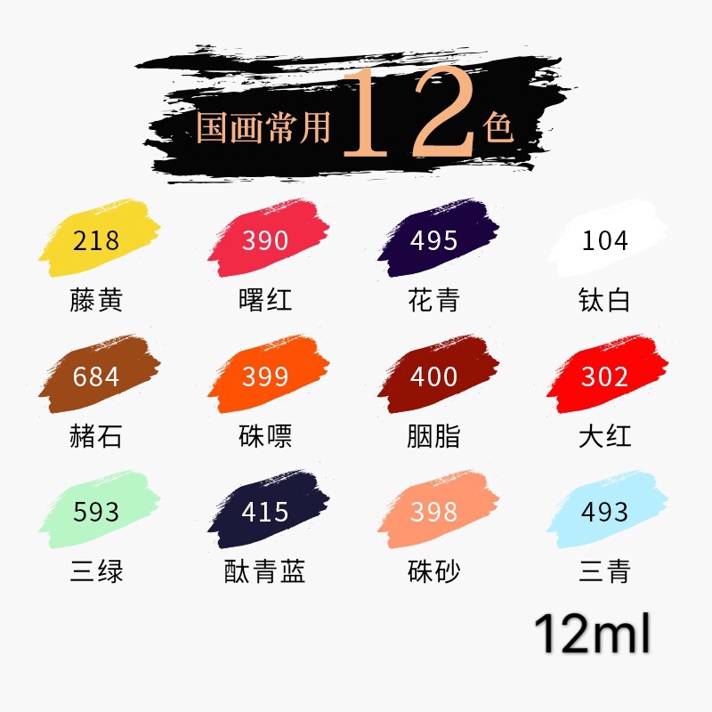 Обычно используемая традиционная китайская живопись 12 видов цветов/12 мл/Всего 12