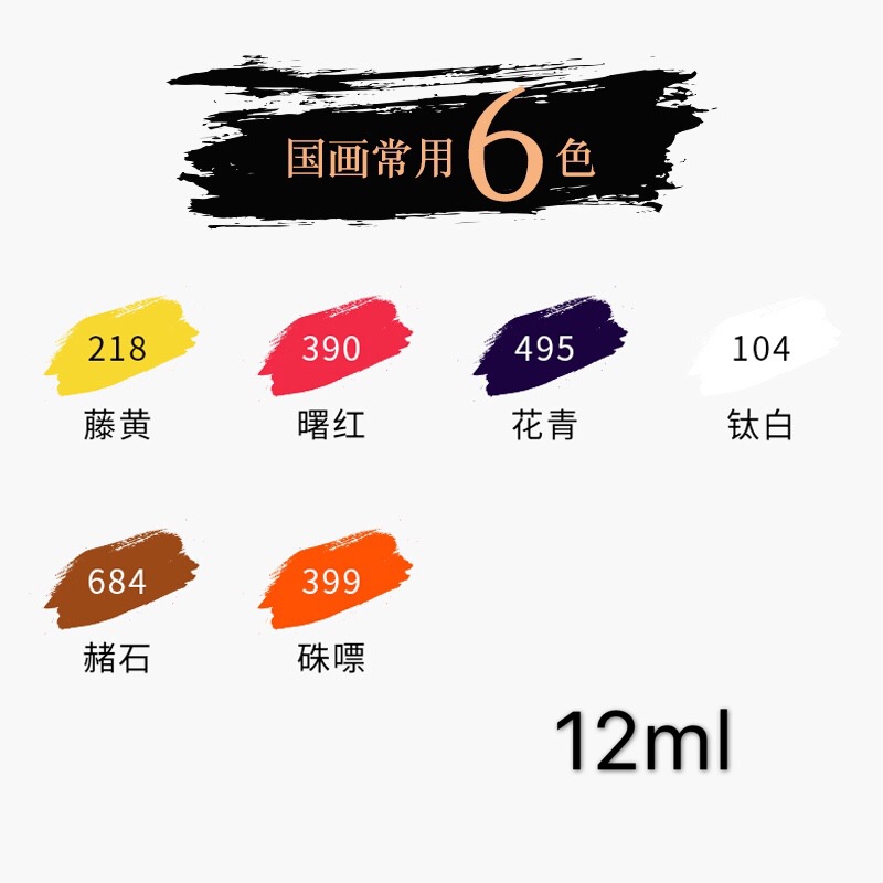Обычно используемая китайская живопись 6 видов цветов/12 мл/всего 6