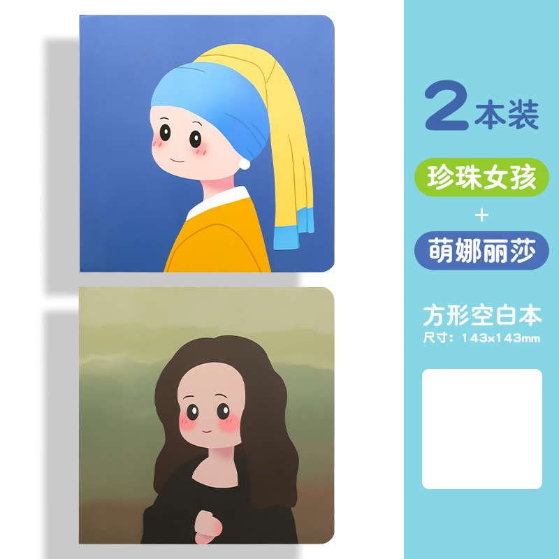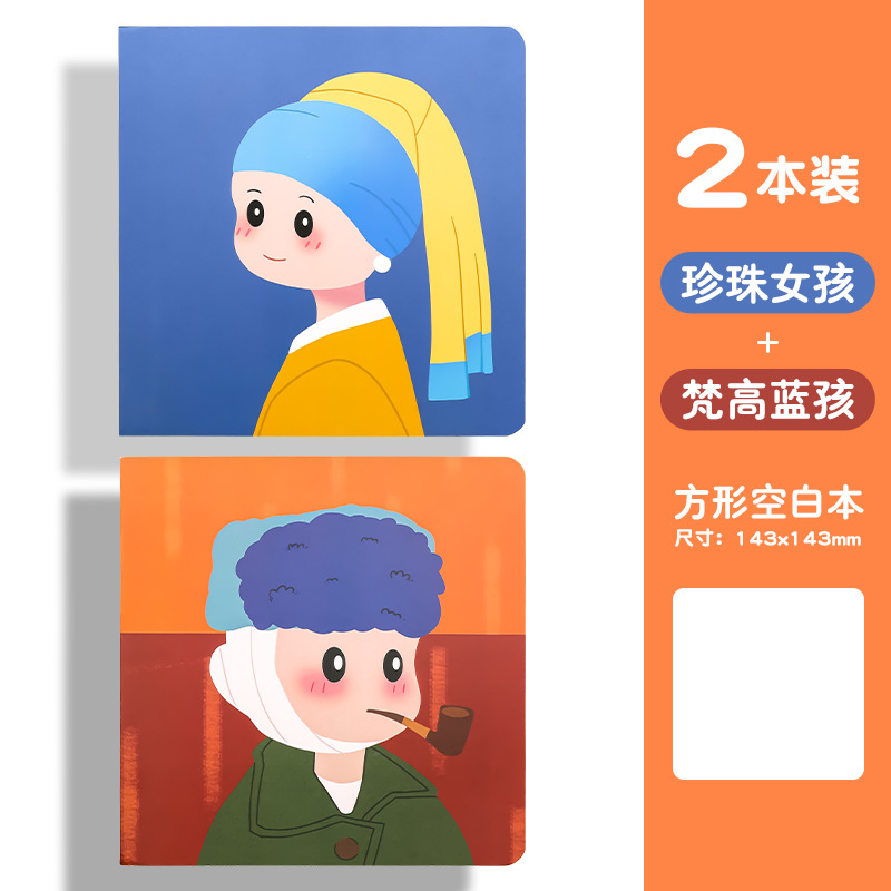 Мультфильм мини пустая книга-жемчужина девушка + Ван Гог синий ребенок