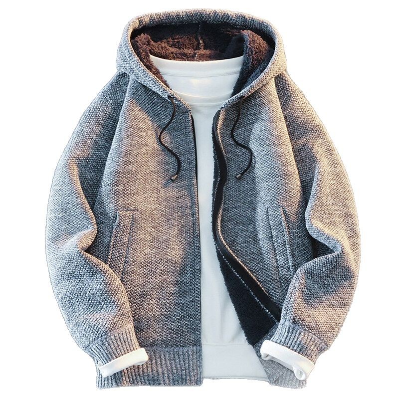 Главная страница > Мужской свободный вязаный свитер с капюшоном и флисовой подкладкой, утолщенная версия, модная повседневная кардиган-куртка для молодых мужчин.