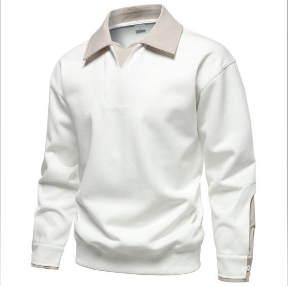 Главная страница > Мужская осенняя рубашка-поло 2025 с отложным воротником, имитация двухслойного дизайна, повседневная, с длинным рукавом, модная, в стиле пэчворк
