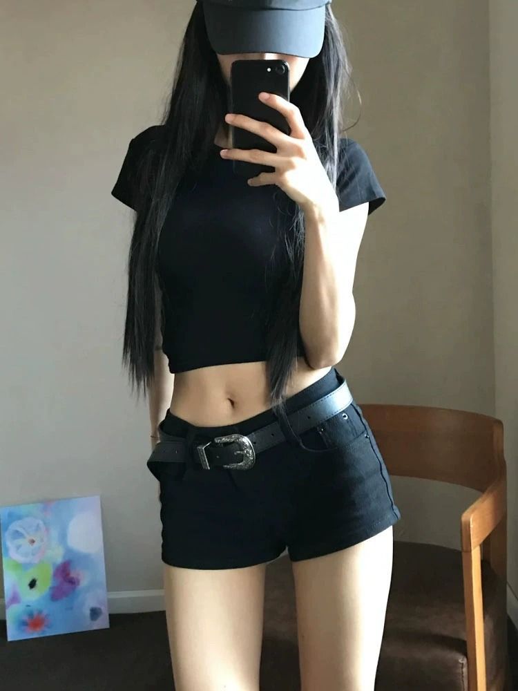 Главная страница > 黑色低腰牛仔超短裤女夏包臀轻亚文化热裤美式辣妹弹力裤子潮工厂