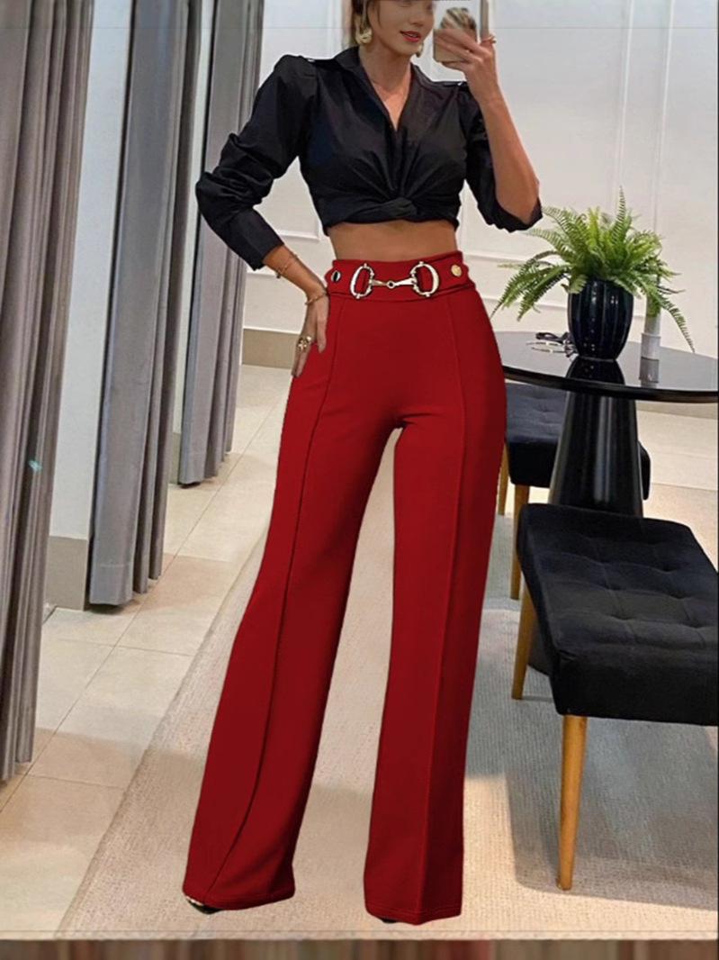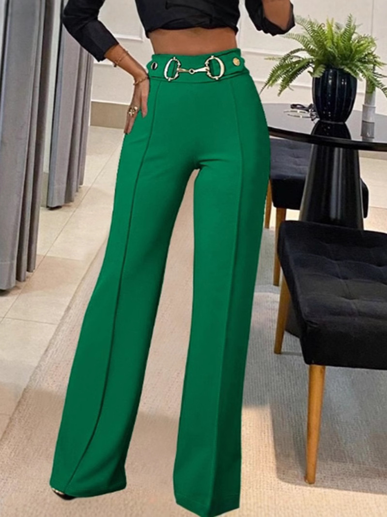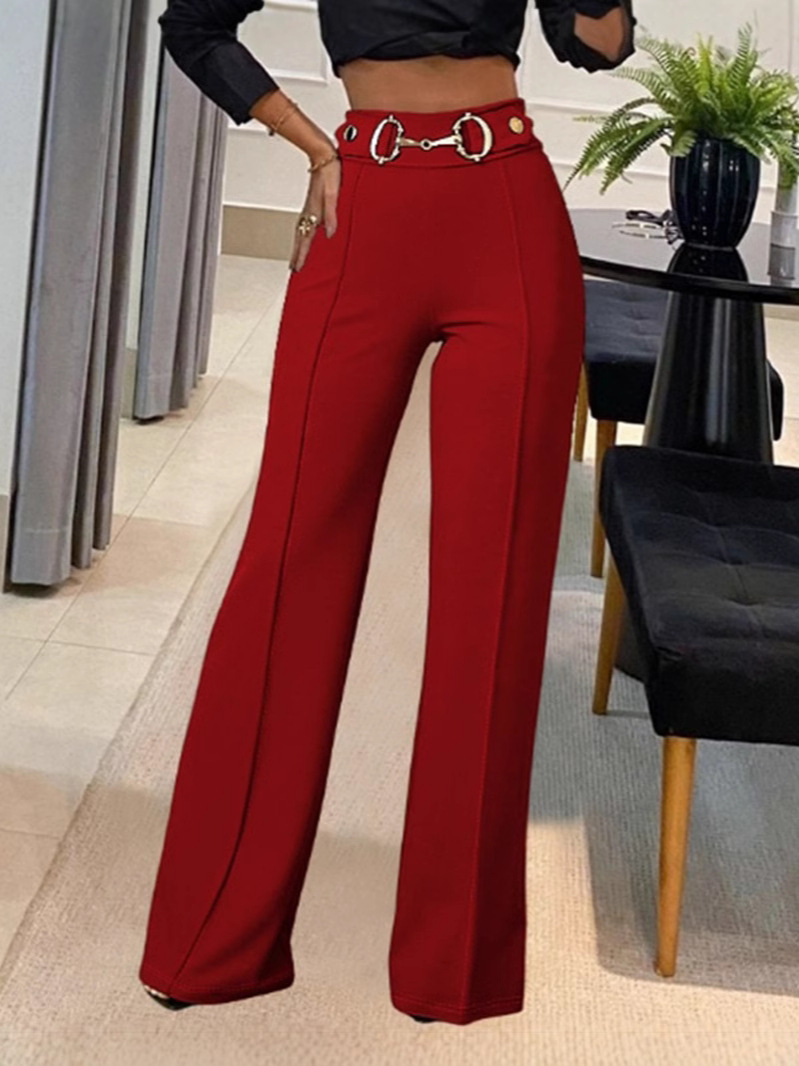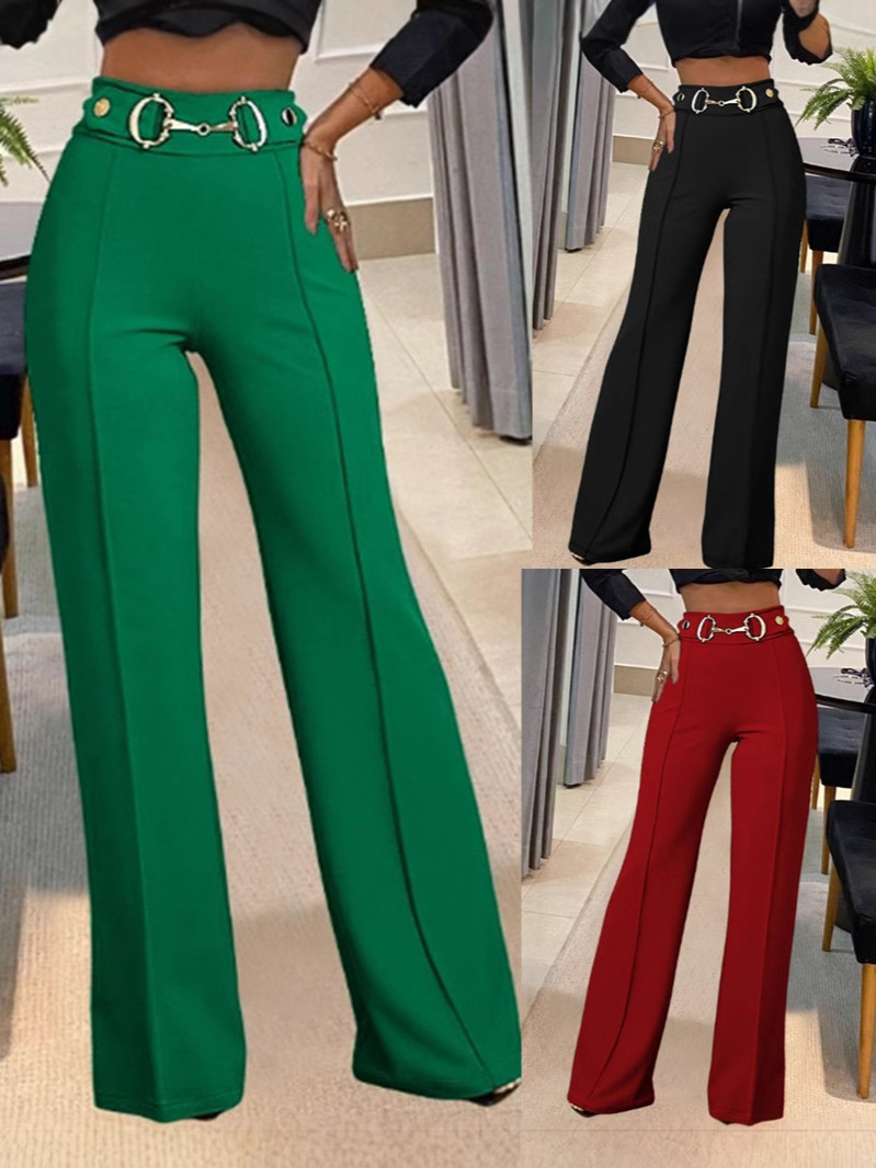 Главная страница > Европейские и американские трансграничные Amazon независимые станции женщины новый сплошной цвет с высокой талией металлические пряжки декоративные модные прямые брюки