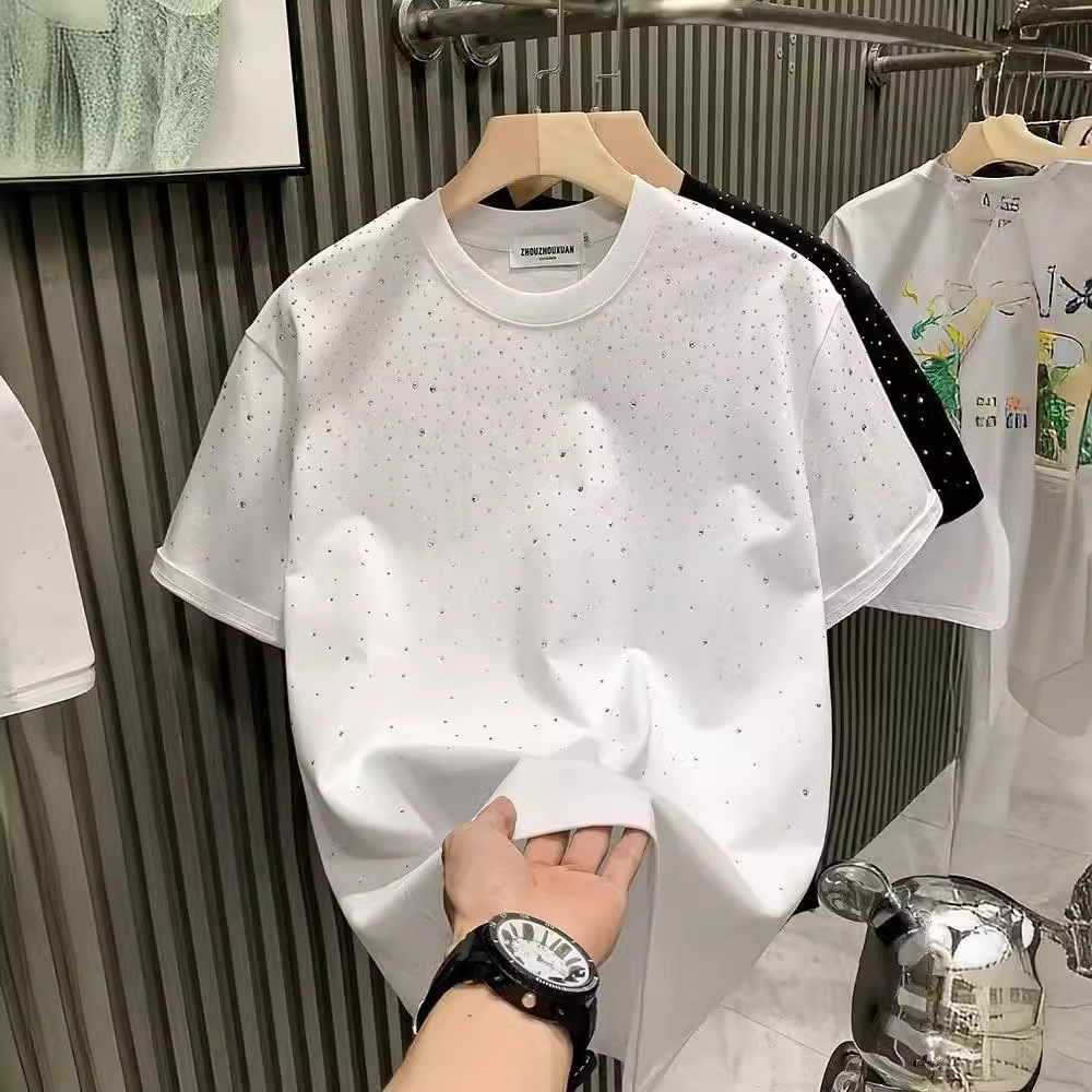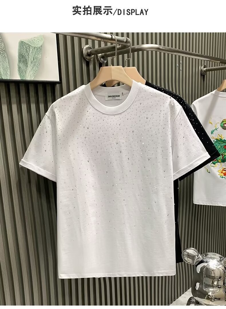 Главная страница > Летняя новая мужская футболка с короткими рукавами модная горячая алмазная сетка красная повседневная нижняя рубашка оптовая простая молодежная рубашка