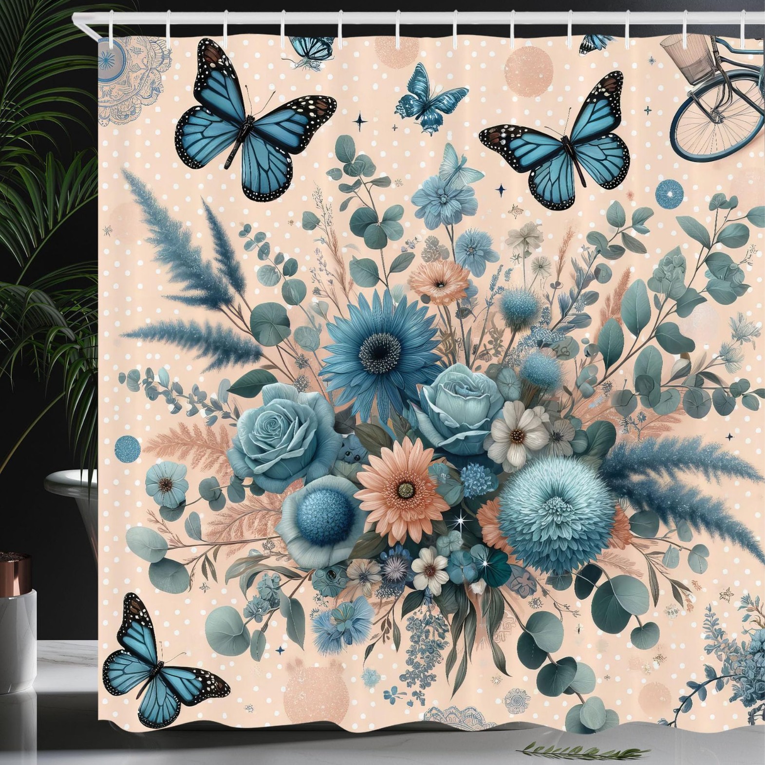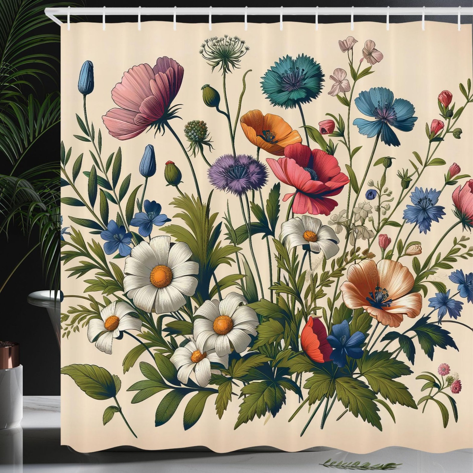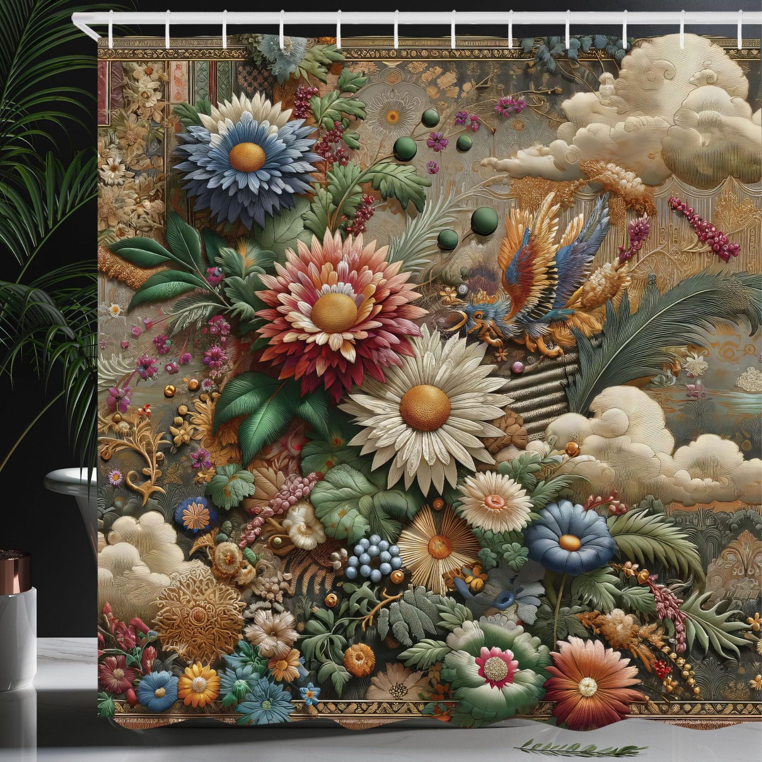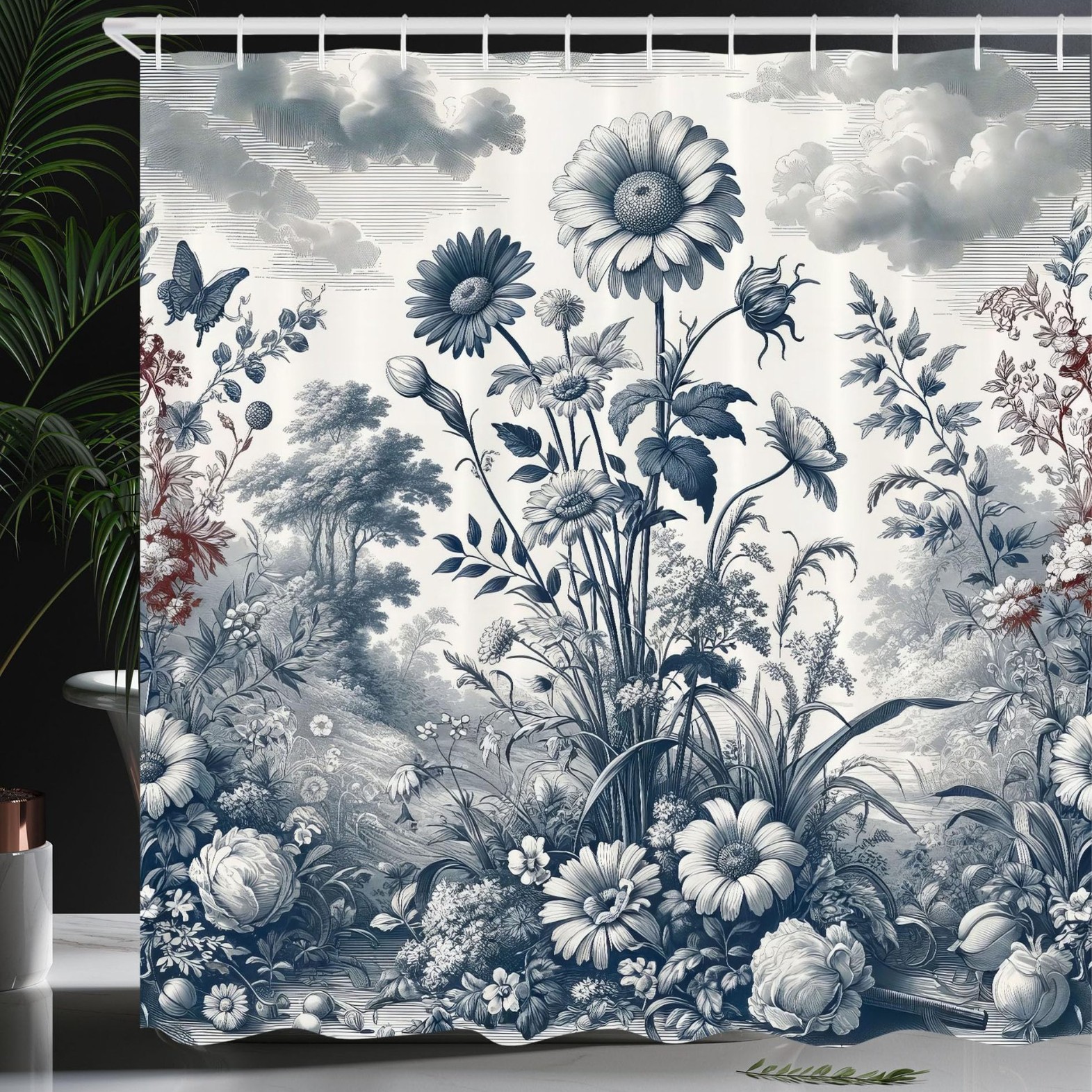 Главная страница > Занавеска для душа с цветочным принтом, декор для дома, садовая занавеска для душа с цветочным растением и крючками для ванной комнаты, туалета и комнаты для гостей