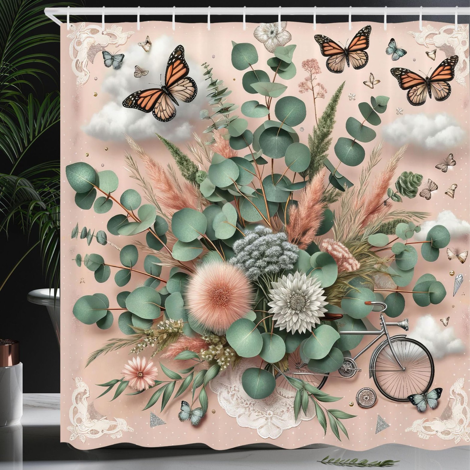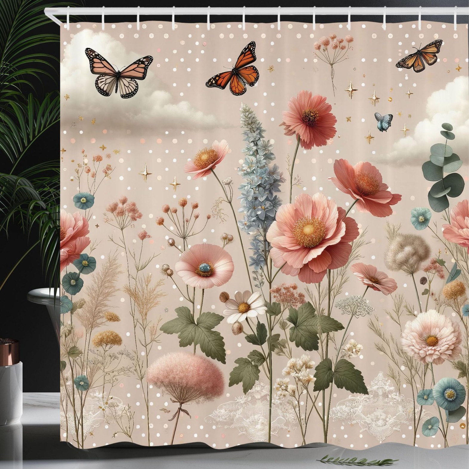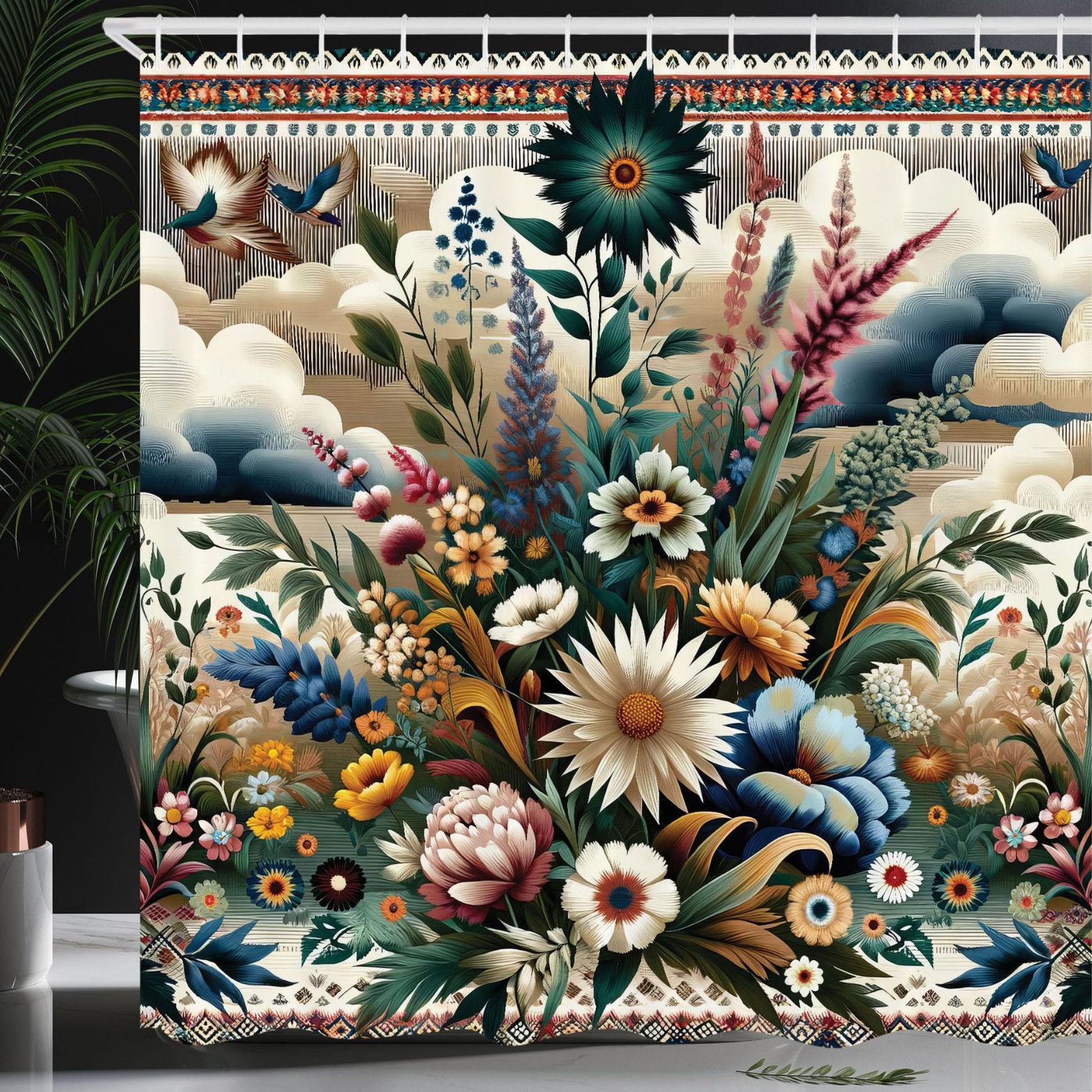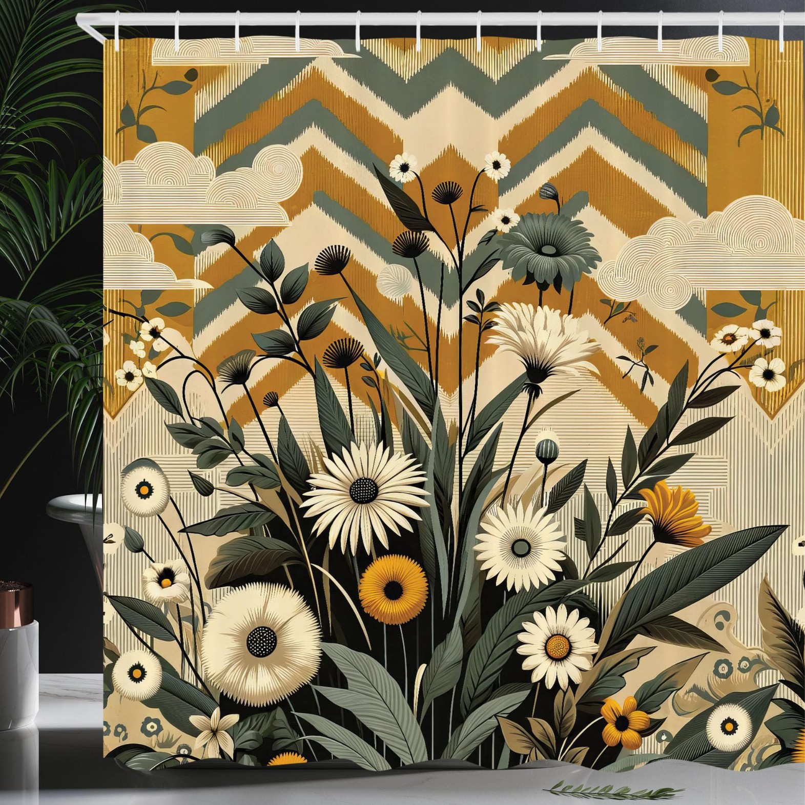 Главная страница > Занавеска для душа с цветочным принтом, декор для дома, садовая занавеска для душа с цветочным растением и крючками для ванной комнаты, туалета и комнаты для гостей