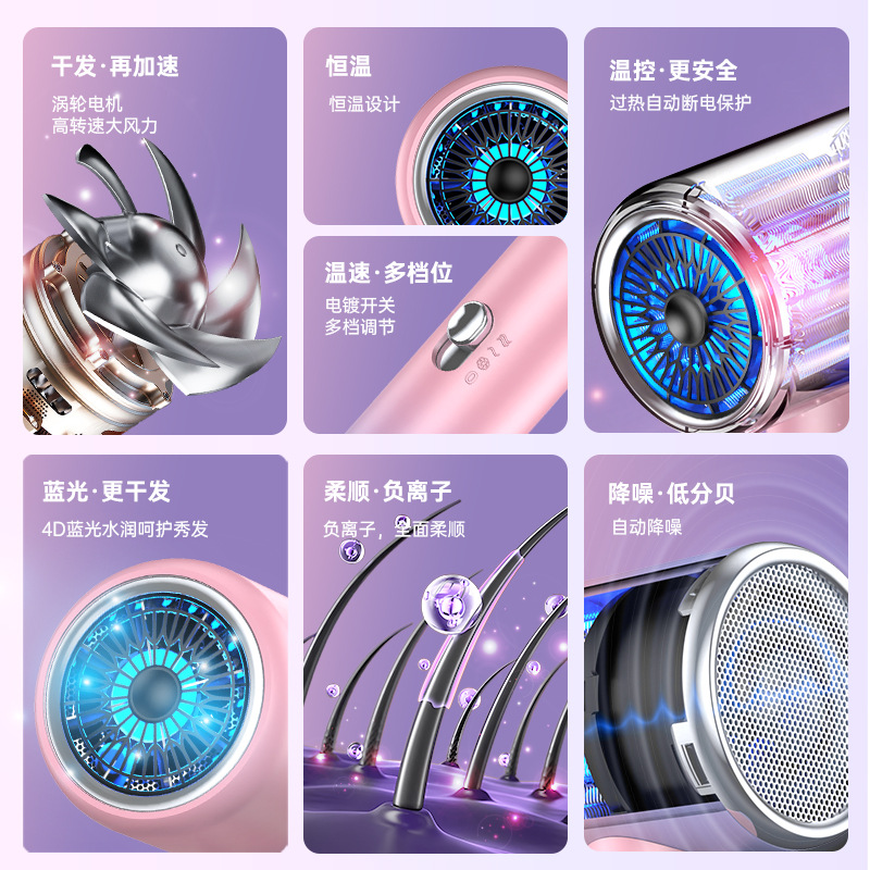 Главная страница > Интеллектуальный фен с контролем температуры, для общежития и дома, мощный, с отрицательными ионами, градиентный, с функцией горячего и холодного воздуха