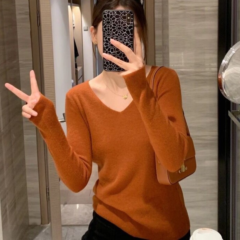 Карамельный коричневый V-образный вырез