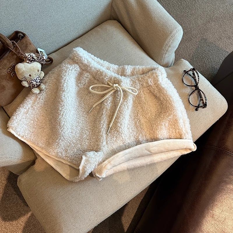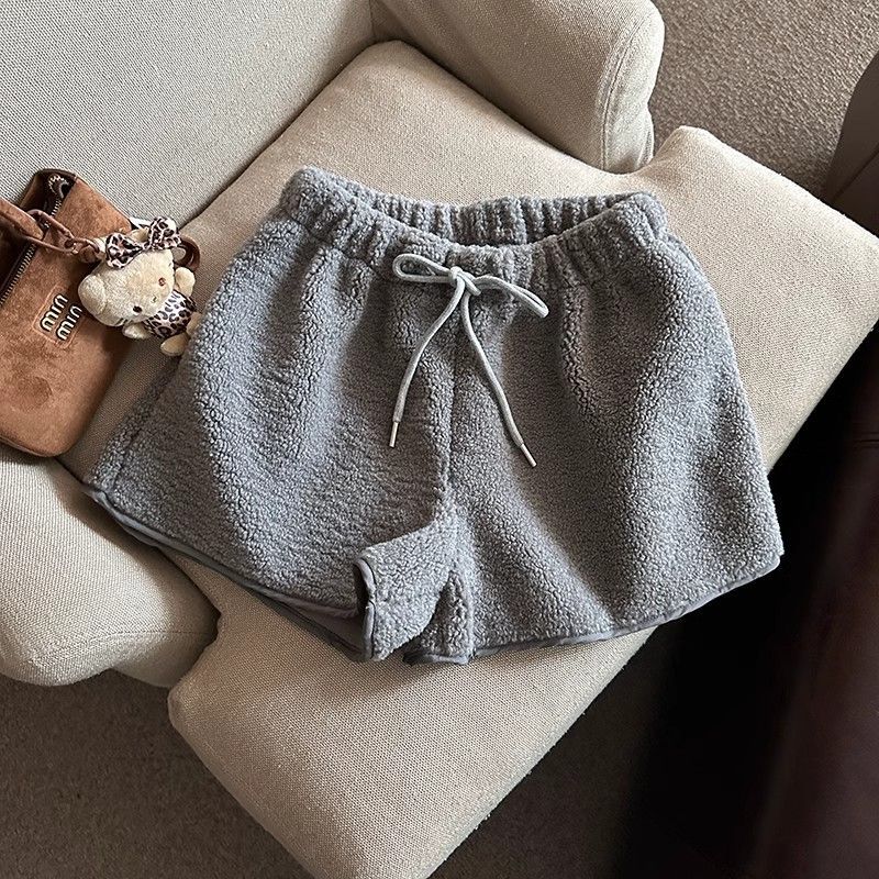 Главная страница > Элегантная талия шнурки из ягненка женские зимние новые теплые наружные повседневные шорты свободные широкие брюки