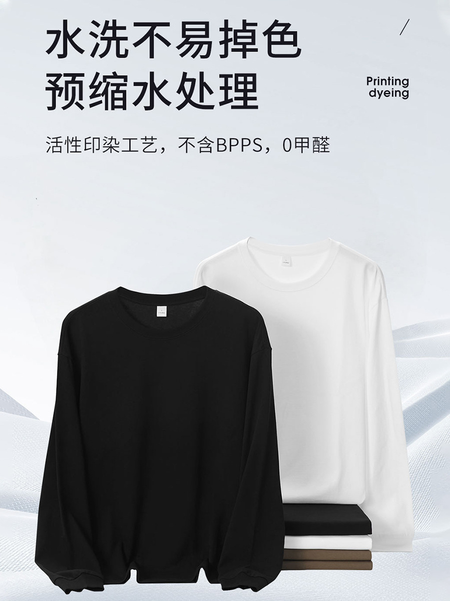 Главная страница > Хлопчатобумажные футболки с круглым вырезом для мужчин и женщин весом 260G расчесанные топы с длинными рукавами и нижними топами осенью новый свободный тренд для мужчин