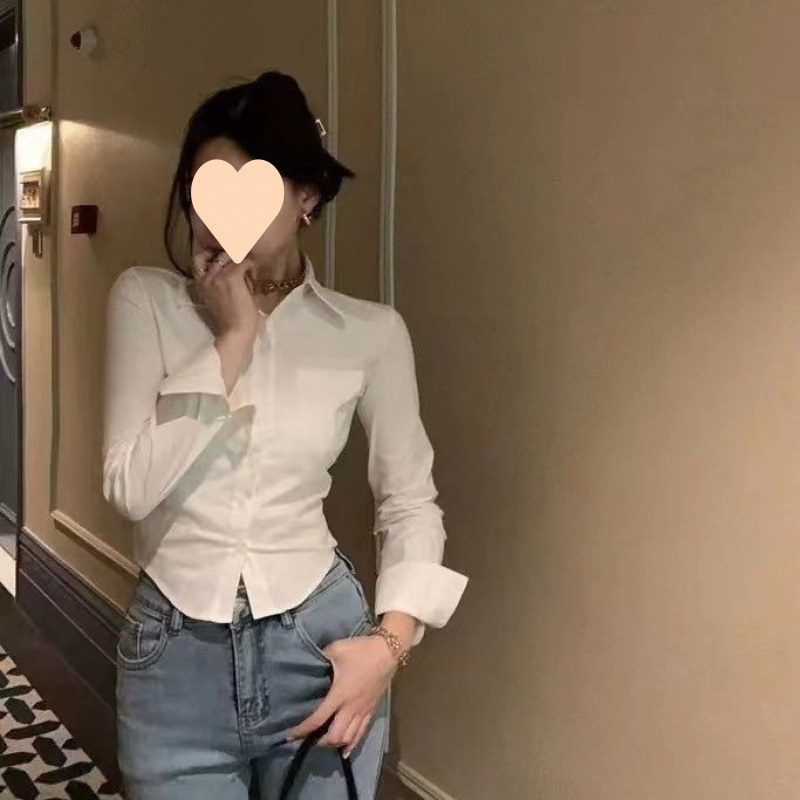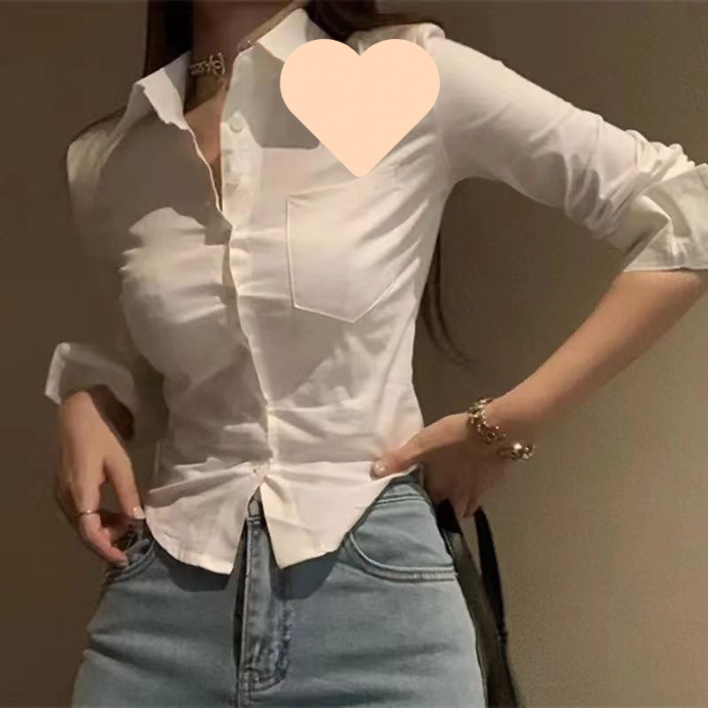 Главная страница > Pure Desire, стильная облегающая талия, короткая сексуальная белая рубашка с воротником, женская рабочая одежда с длинными рукавами на стойке регистрации