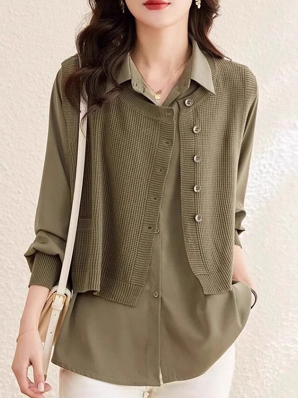 Главная страница > Жилет сшитый настоящий топ из двух частей, женская трикотажная одежда, Модный Западный стиль, весна, осень и зима 2024, новая популярная рубашка