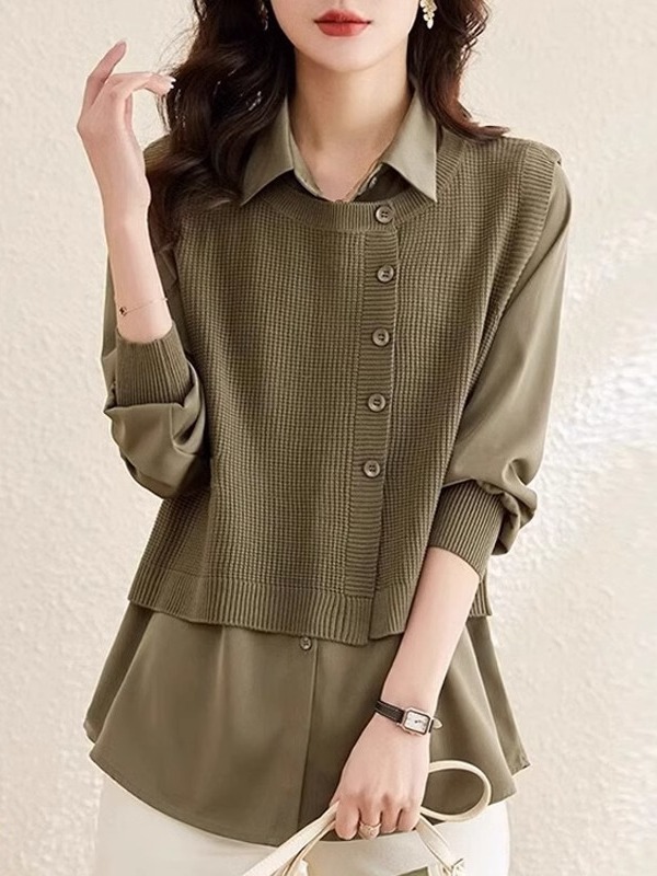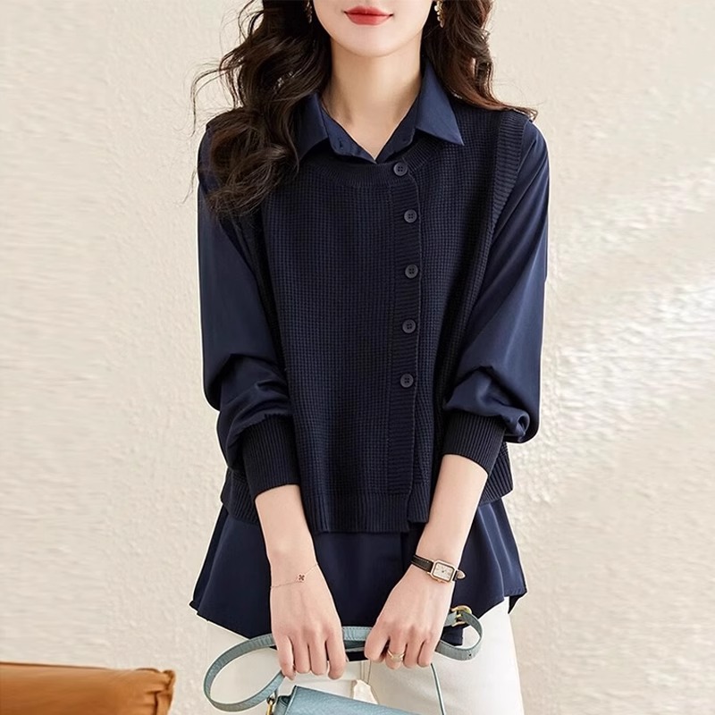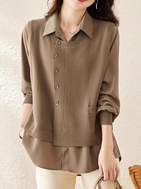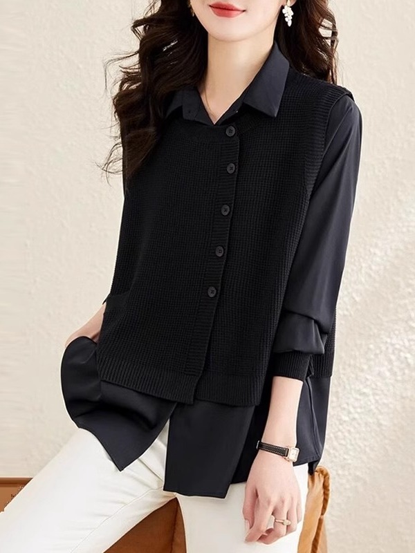 Жилет сшитый настоящий топ из двух частей, женская трикотажная одежда, Модный Западный стиль, весна, осень и зима 2024, новая популярная рубашка