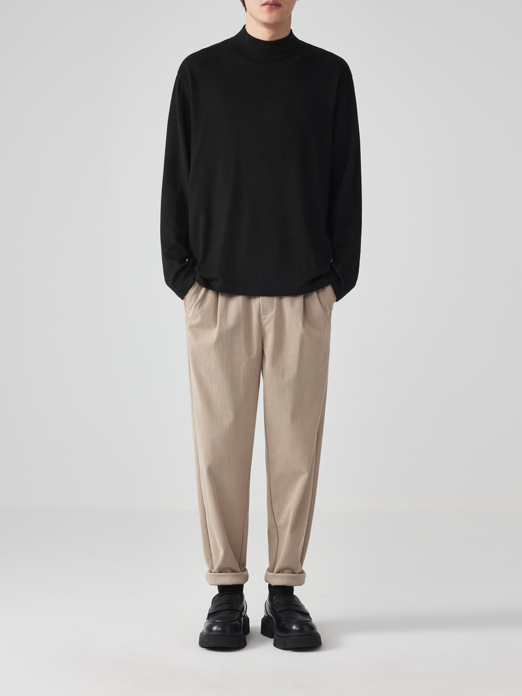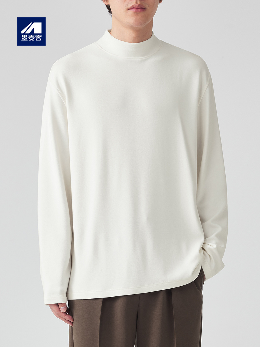 Главная страница > Мужская футболка Momeike с воротником-стойкой, однотонная, модель осень 2025, с инфракрасным подогревом, простая базовая рубашка 75096