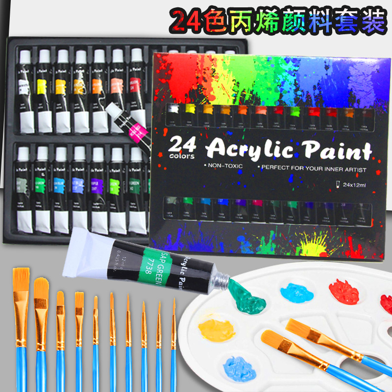 Трансграничный набор акриловой краски Амазонская художественная живопись 12ml настенная роспись граффити 24 цвета краски с кистью