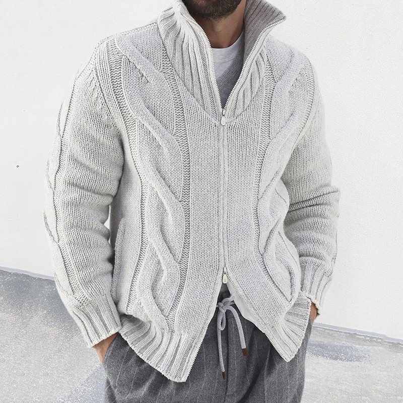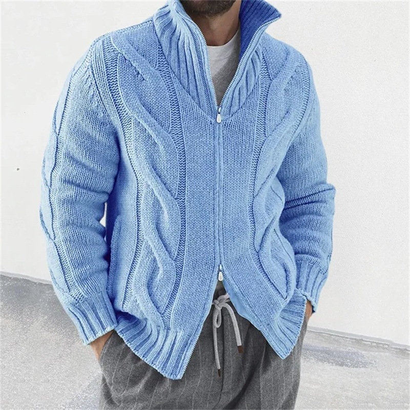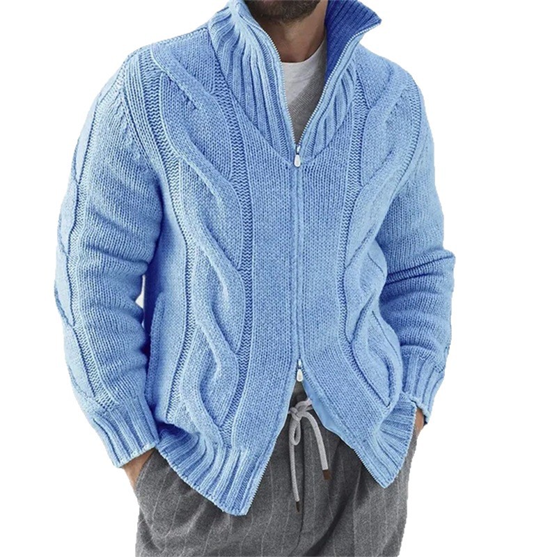 Главная страница > Осенне-зимний мужской однотонный вязаный свитер с воротником-стойкой и длинными рукавами, европейская и американская мода, мужской кардиган Amazon, утолщенный и теплый