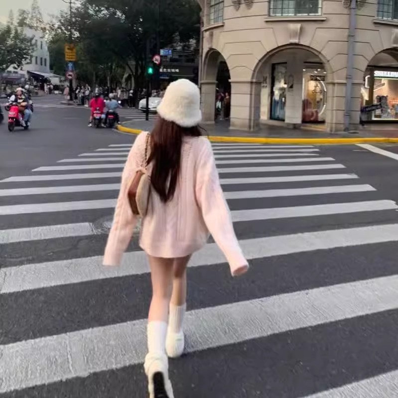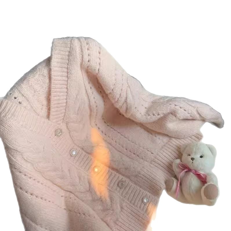 Главная страница > Женский свитер-кардиган розового цвета с V-образным вырезом, свободный крой, имитация норки, вязаный, осень-зима 2025 года.