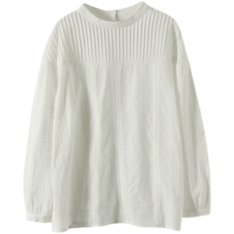 Главная страница > Сладкая кружевная плиссированная рубашка с длинными рукавами в японском художественном стиле, Женский однотонный Свободный пуловер