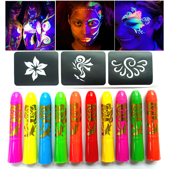 Главная страница > 10 цветных светящийся цвет лица трансграничная окраска тела лица роспись Хэллоуин акварельный карандаш фестиваль макияж пигмент