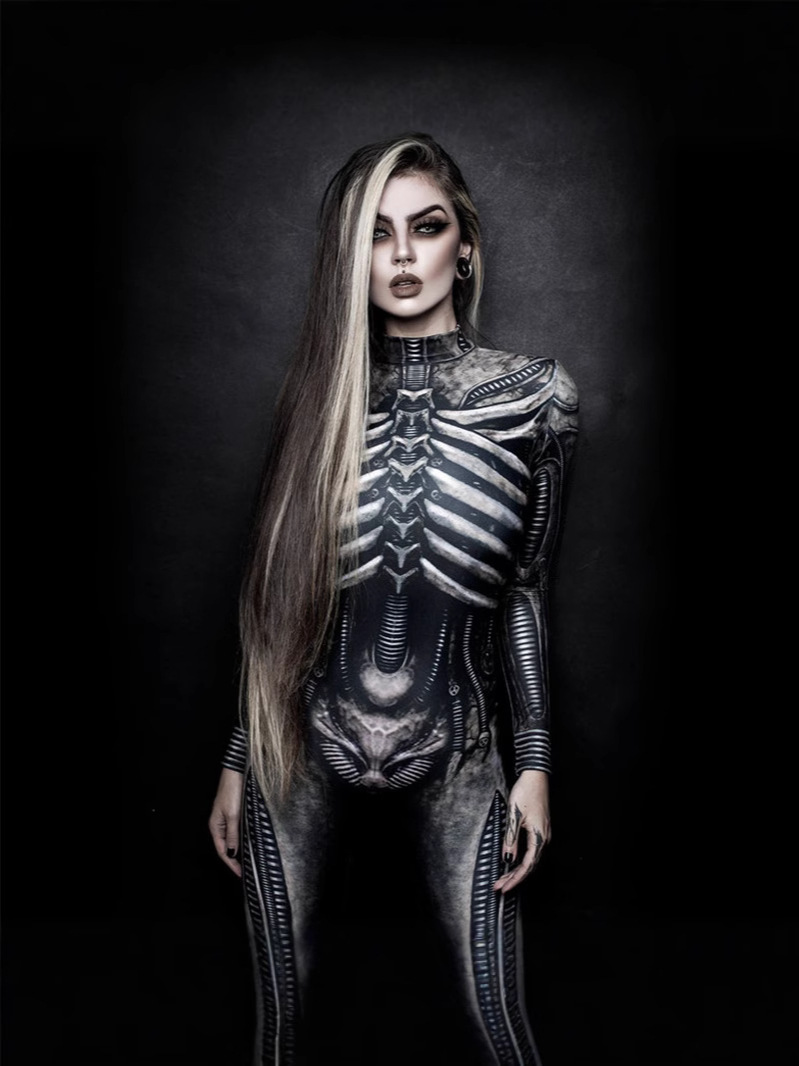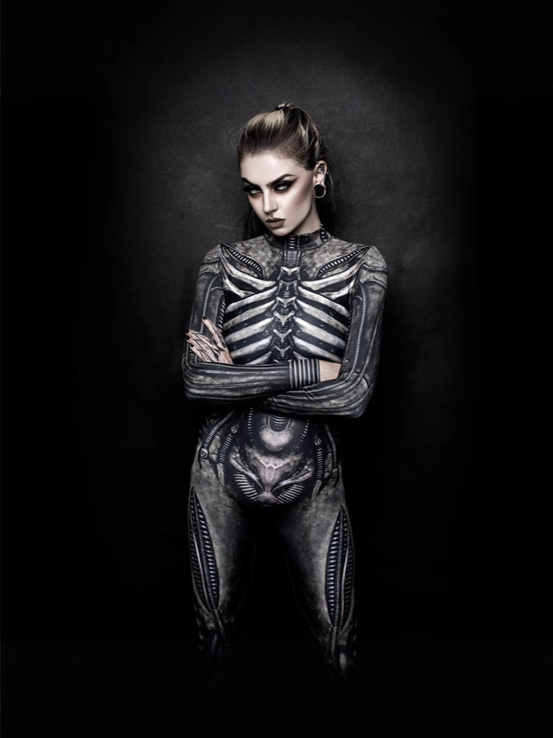 Главная страница > Трансграничный Хэллоуин женская одежда спот человеческого скелета принт готический стиль вечеринки косплей комбинезон женские Европа и США