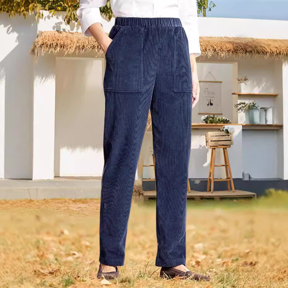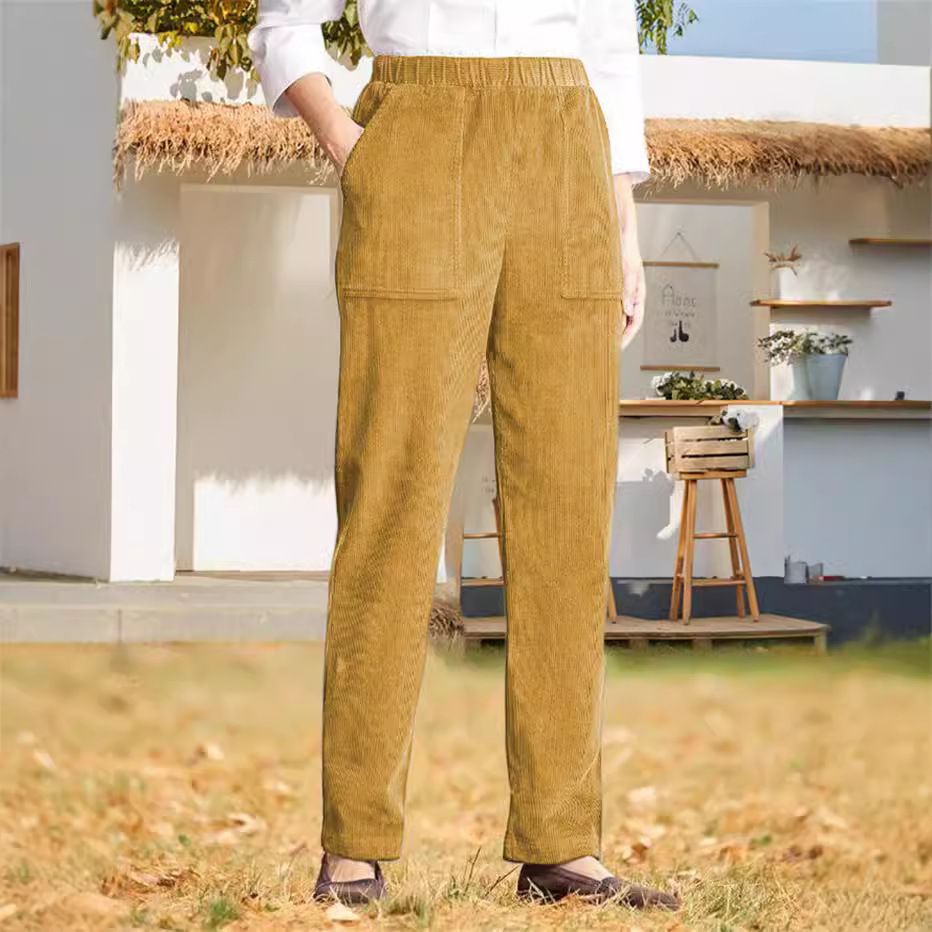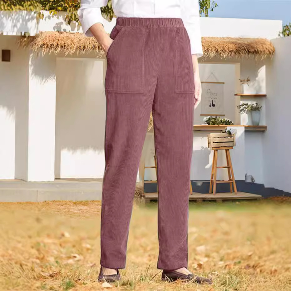 Главная страница > 2024, независимая станция Amazon, осенние и зимние новые женские однотонные вельветовые повседневные брюки прямого кроя в европейском и американском стиле с эластичной резинкой на талии