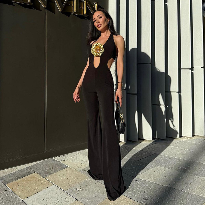 Главная страница > Европейские и американские трансграничные женские летние 2025 новые vi-образные шею с открытой спиной ремешки золотые трехмерные цветочные комбинезоны