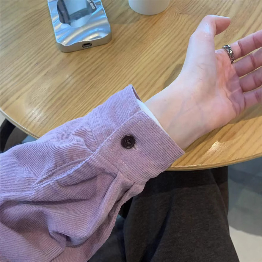 Главная страница > Нежная фиолетовая вельветовая рубашка для женщин! Осенняя винтажная универсальная приталенная многослойная повседневная рубашка-куртка 2025 года.