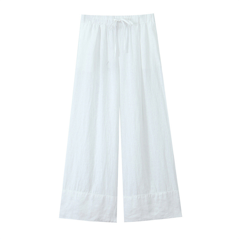Внешняя торговля 2024 Женская оптовая повседневная одежда Льняная смешанная рубашка с длинными рукавами брюки с высокой талией 4877078