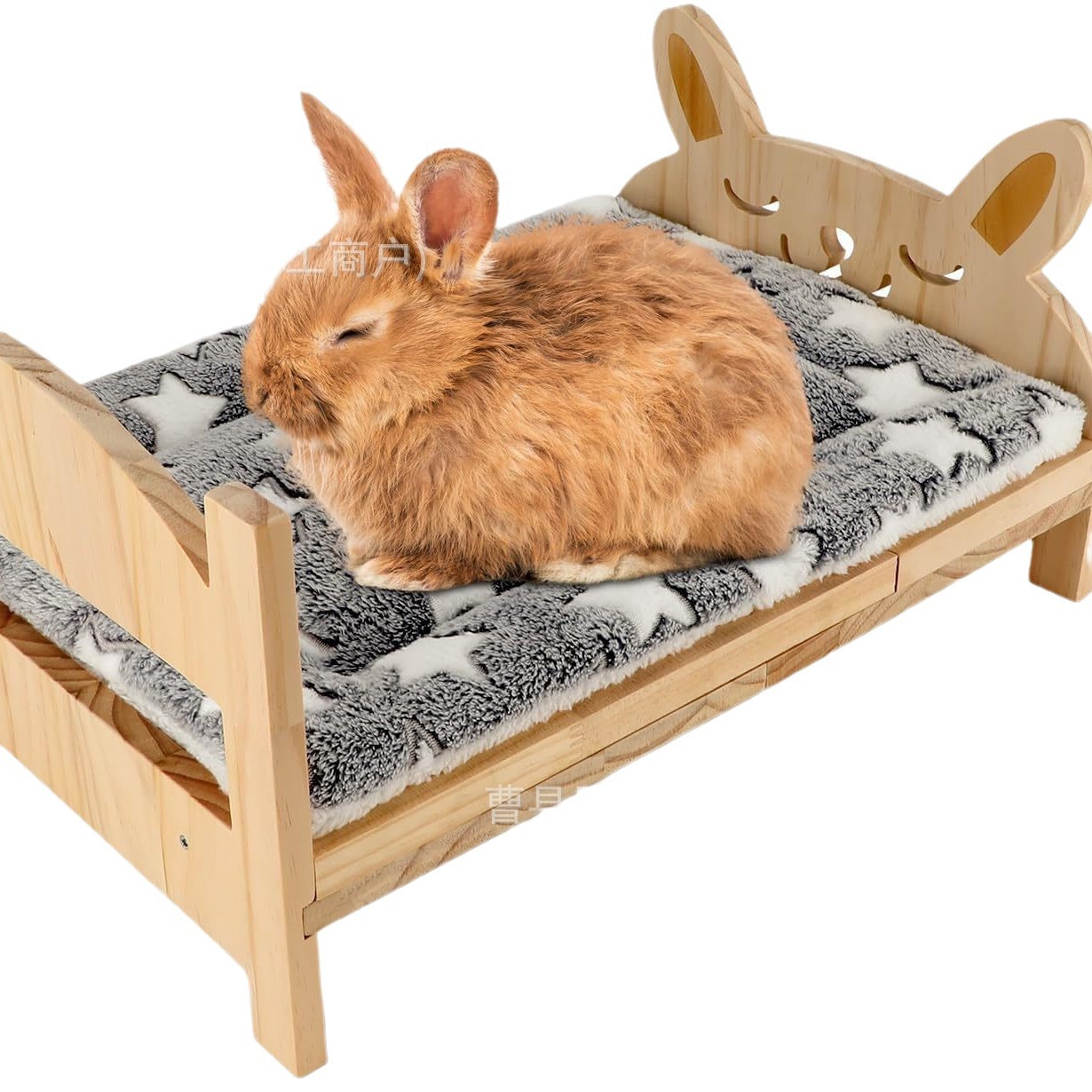 Деревянный разборный домик-лежанка для кошек, мультяшный дизайн, из массива дерева, для мелких животных, клетка для кроликов, маленькая милая лежанка для питомцев от производителя