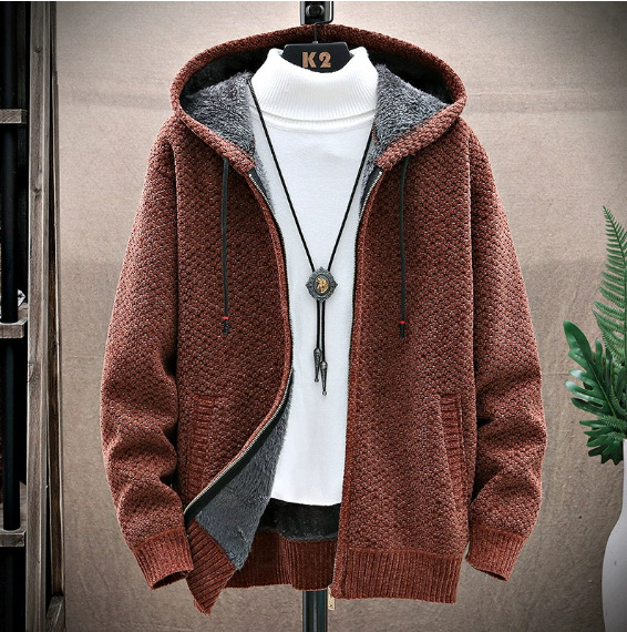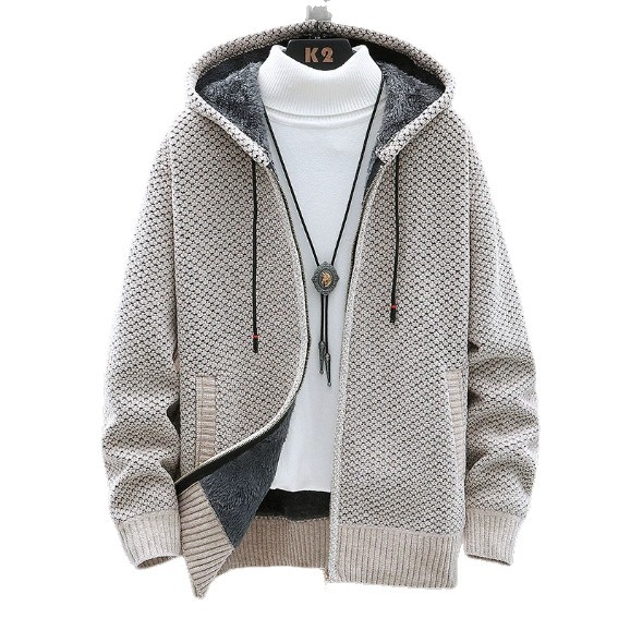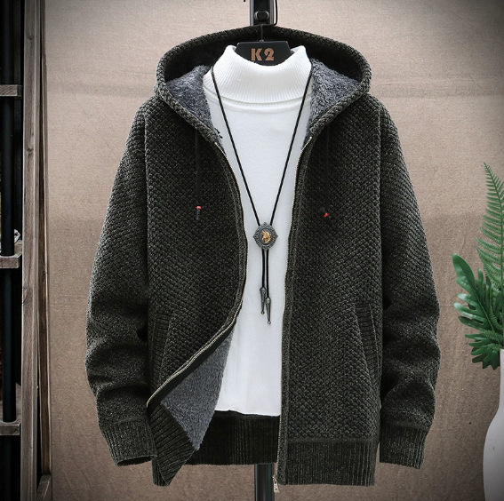 Главная страница > 2021 осенне-зимний новый свитер с флисовой подкладкой для внешней торговли, мужской модный кардиган больших размеров с капюшоном, трендовый мужской свитер на молнии