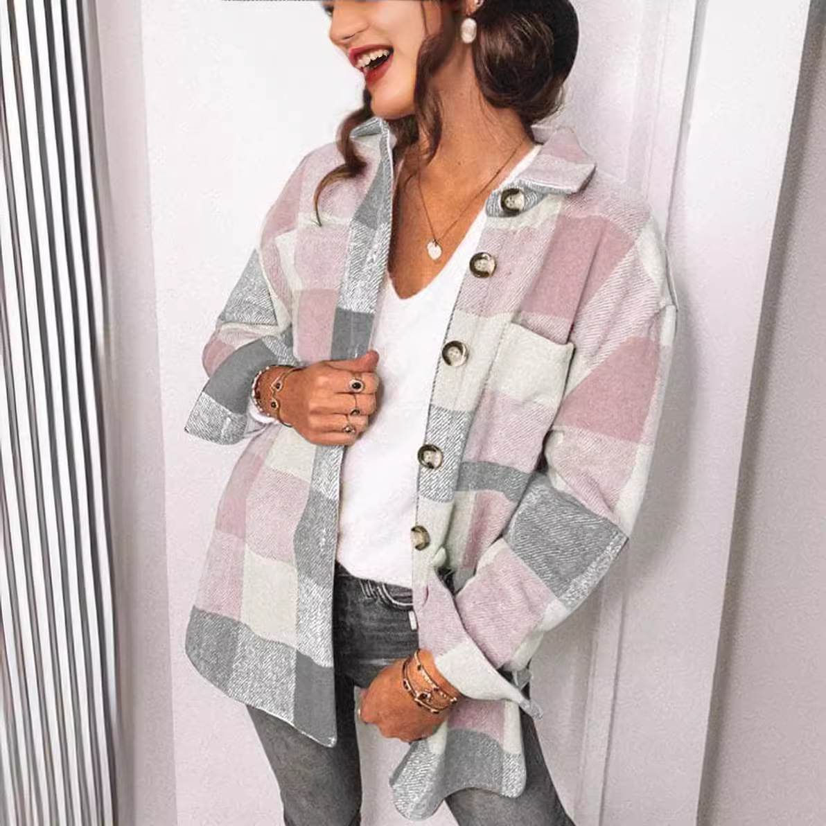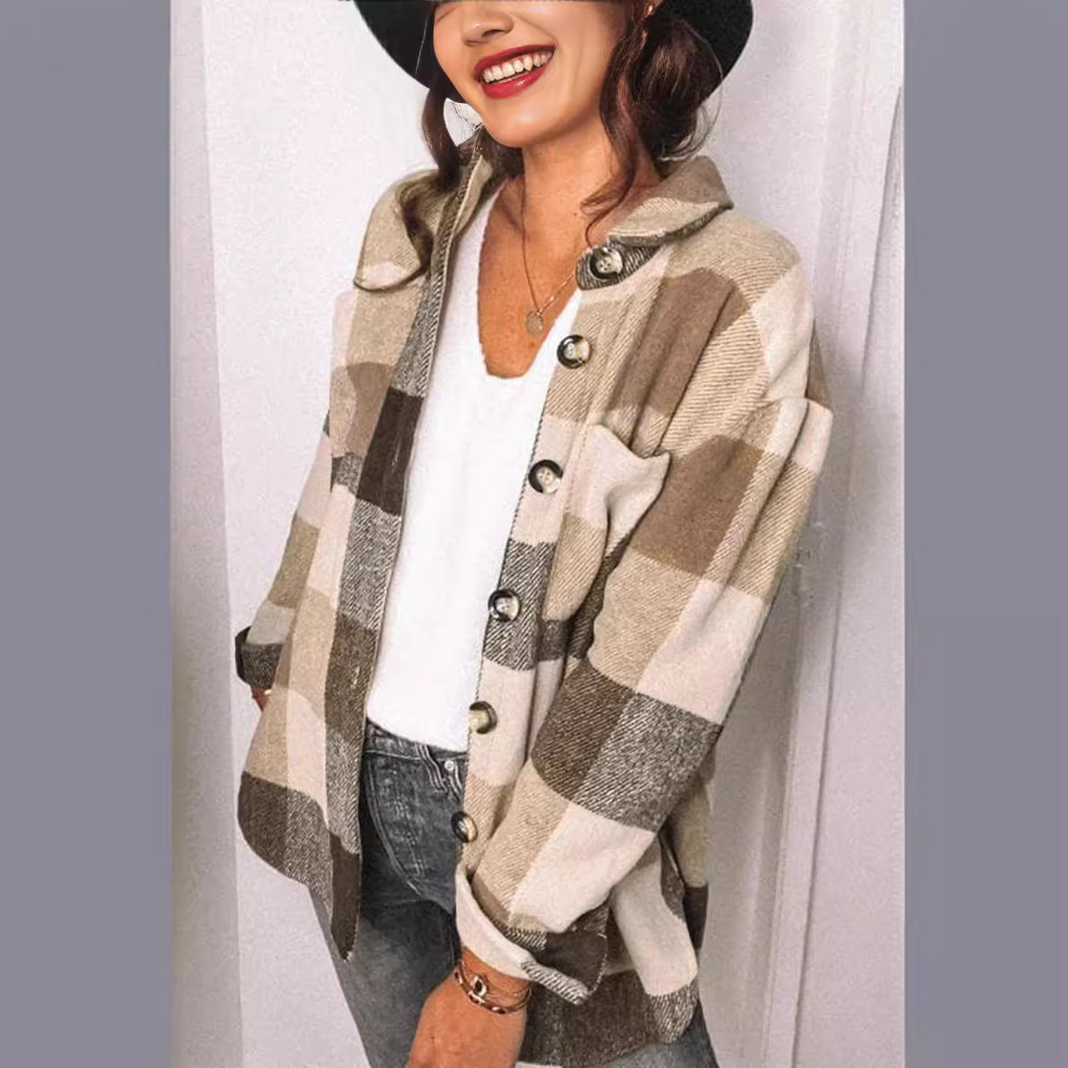 Главная страница > 2025 европейская и американская новая клетчатая рубашка для женщин на осень и зиму Amazon трансграничная новая стильная повседневная куртка с клапаном и карманами для женщин
