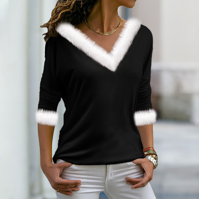 Главная страница > Европейский и американский зимний топ AliExpress Amazon, новый женский пуловер с V-образным вырезом, свободная осенне-зимняя футболка с трансграничным взрывом