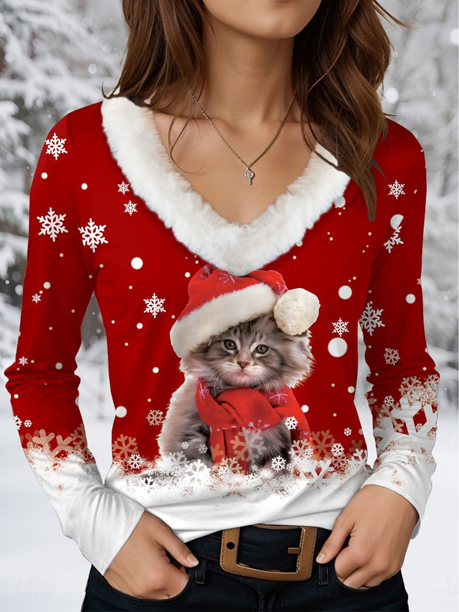 Европейский и американский зимний топ AliExpress Amazon, новый женский пуловер с V-образным вырезом, свободная осенне-зимняя футболка с трансграничным взрывом