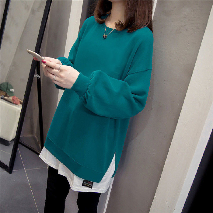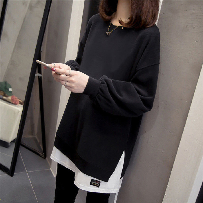 Главная страница > Хлопковая тонкая толстовка больших размеров из двух частей для женщин, осенне-зимняя футболка средней длины с разрезом, удобный топ