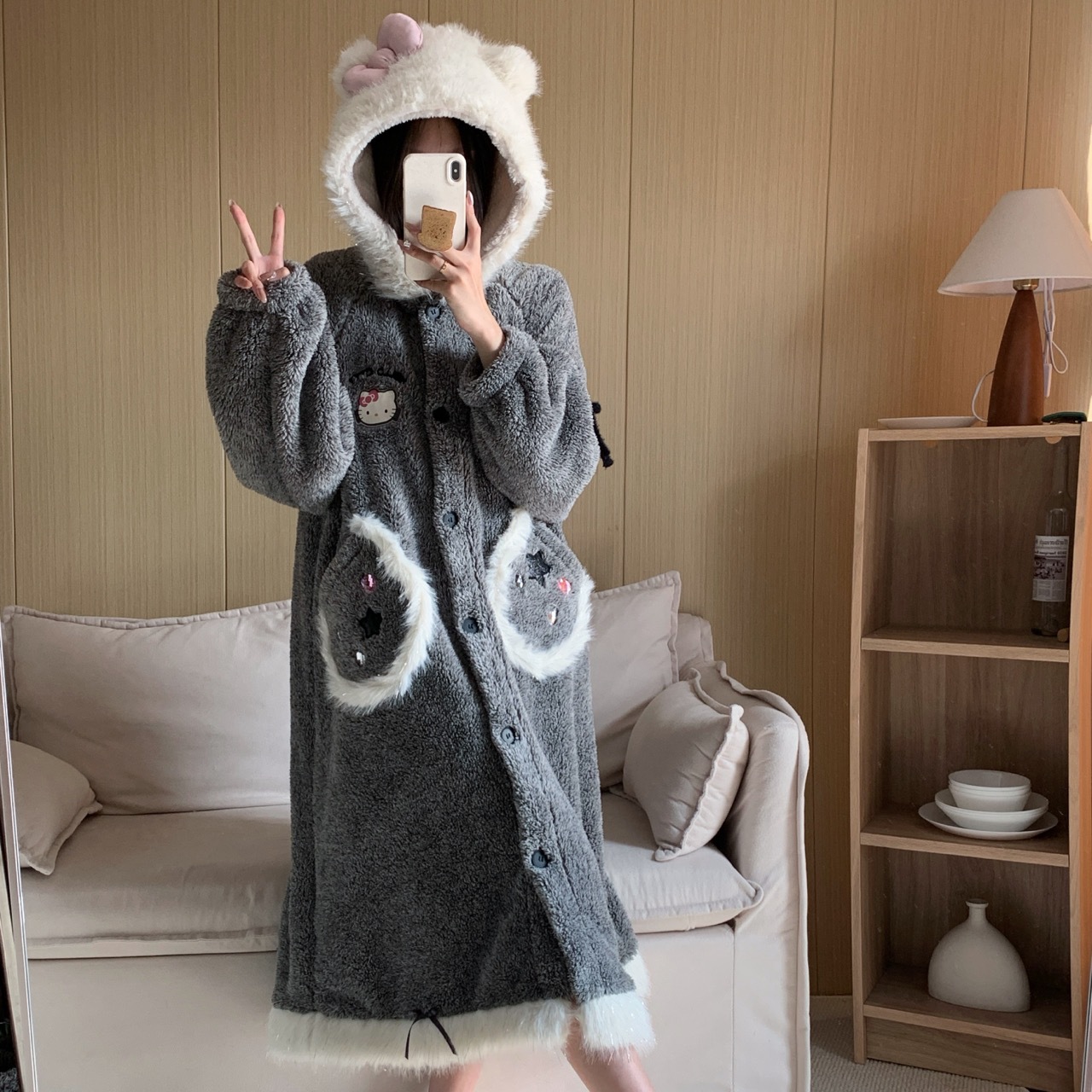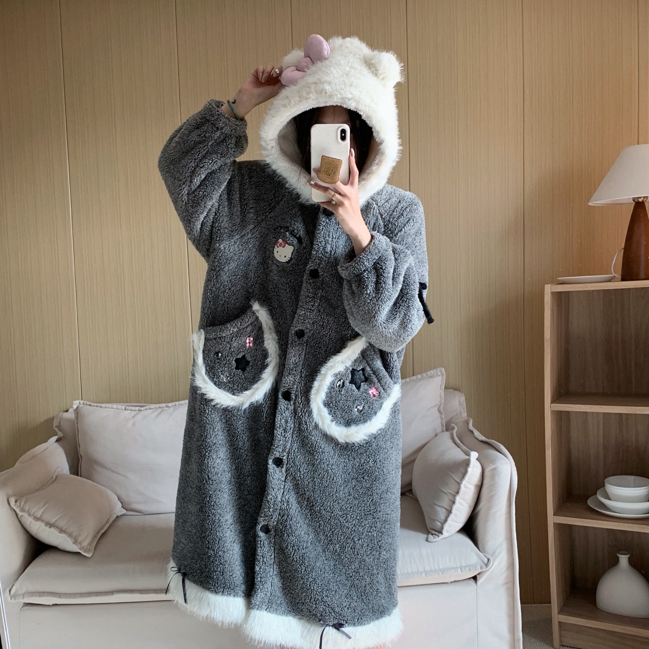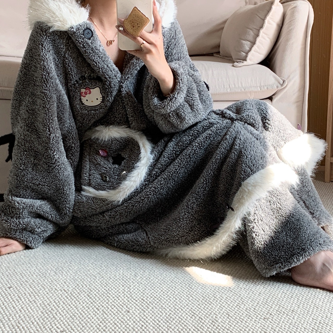 Главная страница > Пижама женский осенний и зимний новый коралловый бархат толстый и милый KT-кошка Мик носит халат на улице