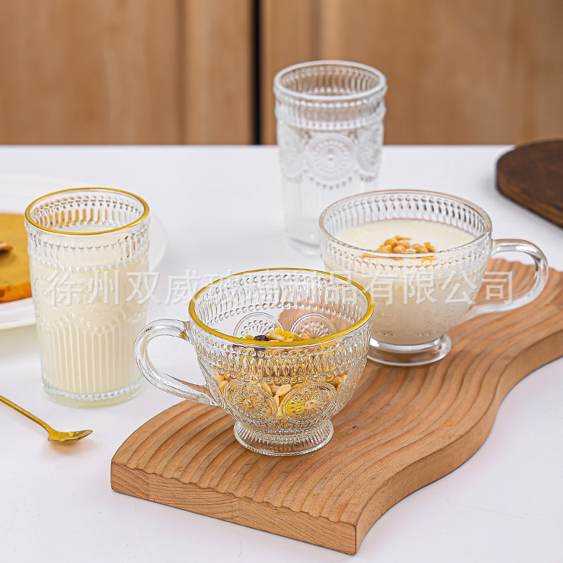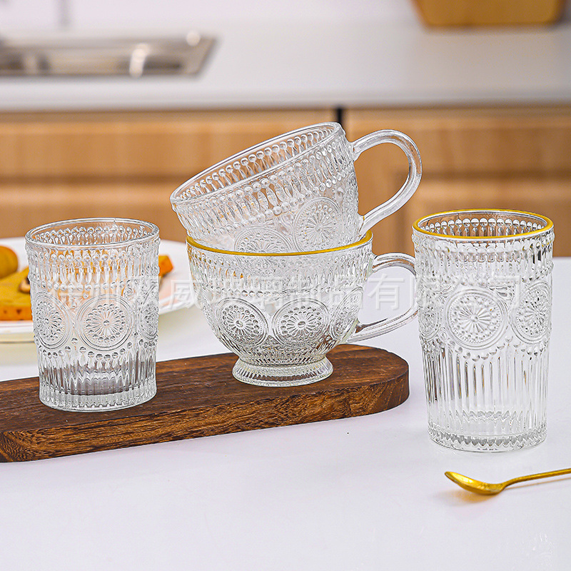Главная страница > Пномпень с рельефным подсолнечником чашка с ручной подаркой Ретро высокая ценность домашнего стекла стакан фруктовый сок подарочный стакан