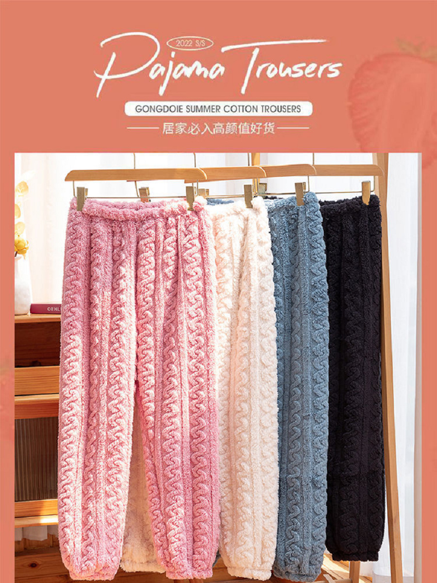 Главная страница > Толстые пижамные штаны на флисовой подкладке, женские осенне-зимние теплые брюки из кораллового флиса для полных девушек, Свободные повседневные домашние брюки больших размеров
