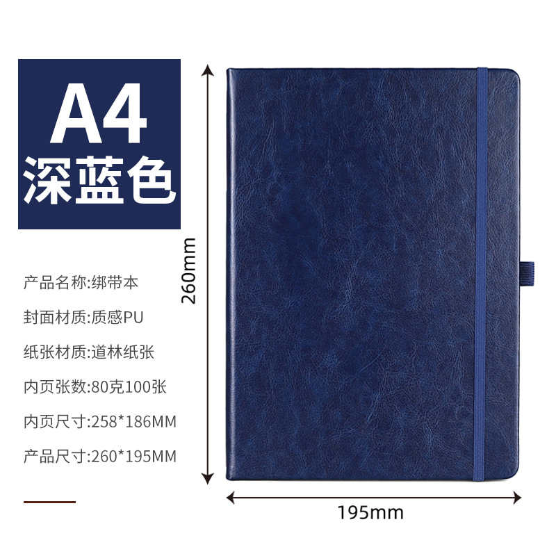 A4 — блокнот с твердым ремешком — темно-синий.