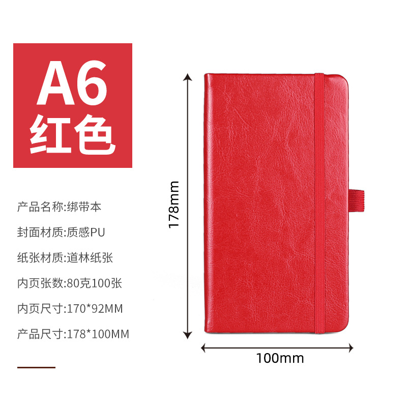 A6 — блокнот с твердым ремешком — красный