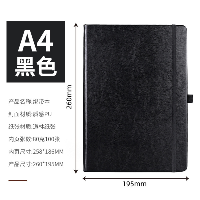 A4 — блокнот с твердым ремешком — черный.