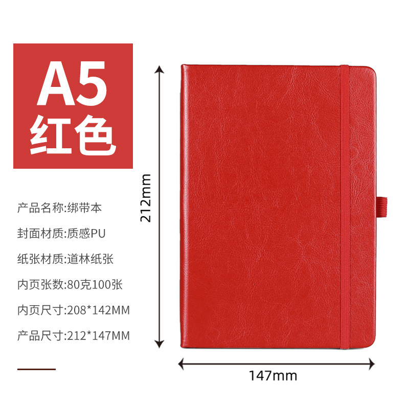 A5 — блокнот с твердым ремешком — красный