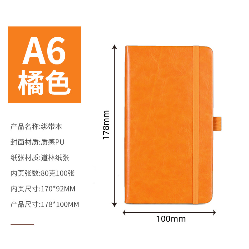 A6 — блокнот с твердым ремешком — оранжевый.