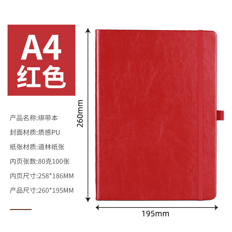 A4 — блокнот с твердым ремешком — красный