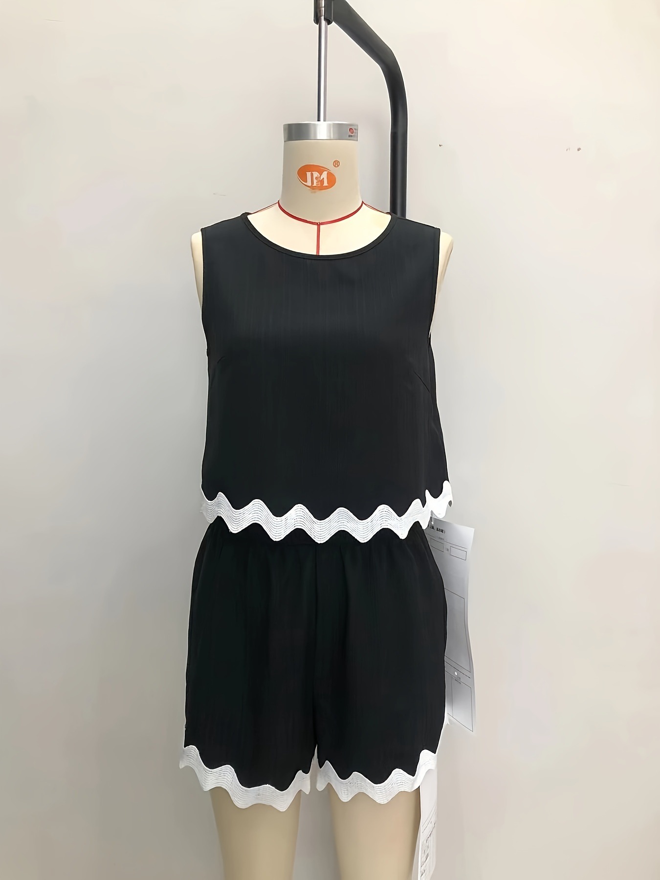 Главная страница > Amazon трансграничная внешняя торговля женская одежда новый цвет контрастные шорты без рукавов кружевной набор летний набор из двух частей